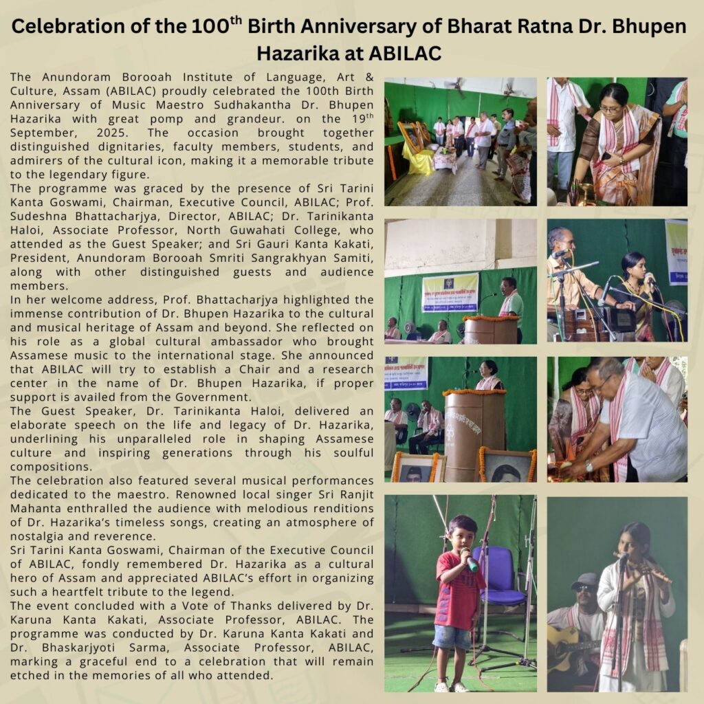 Anundoram Borooah Institute of Language, Art and Culture, Assam (ABILAC) joins the people of Assam in mourning the untimely demise of the legendary musician and cultural icon, Zubeen Garg.